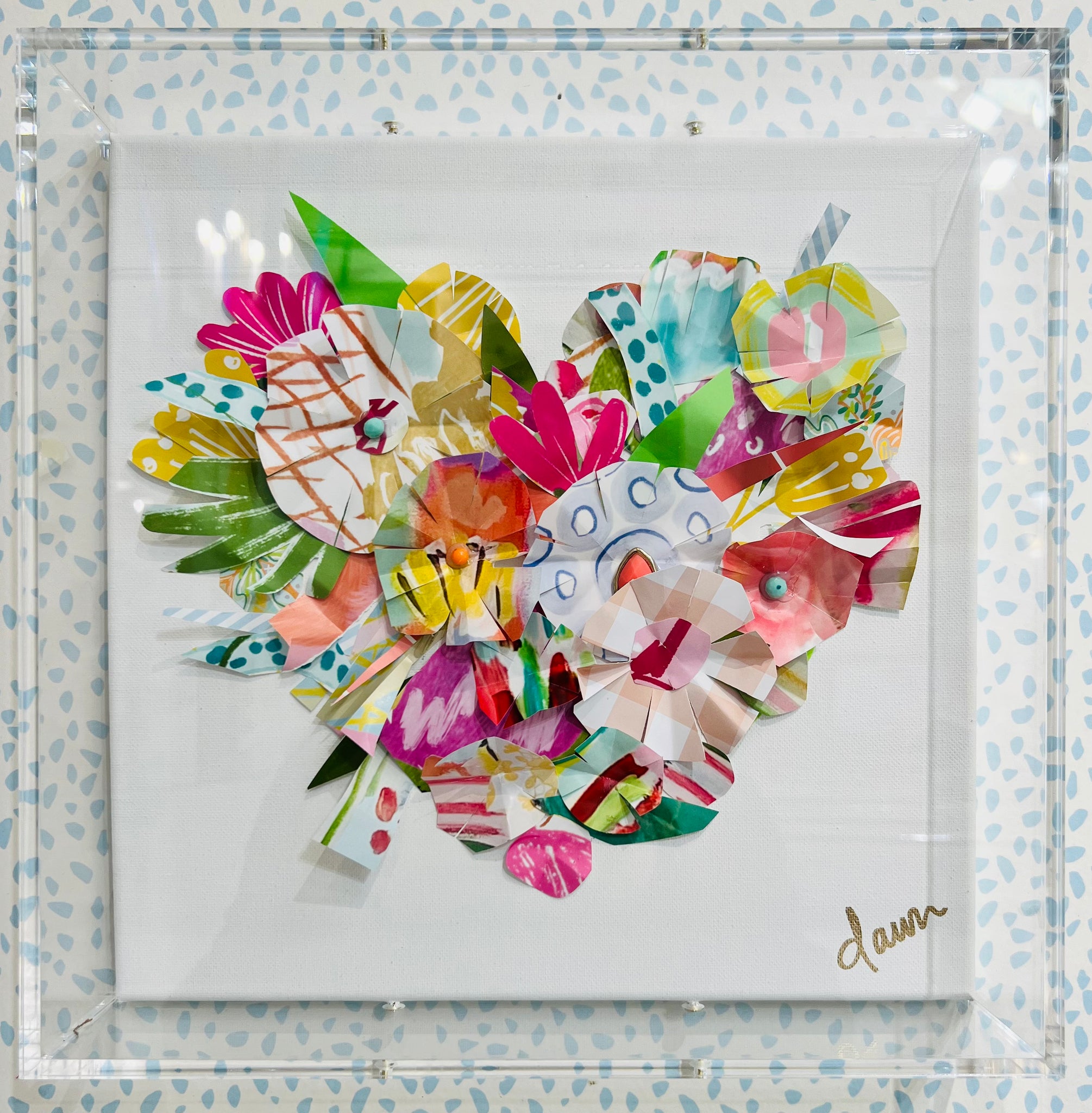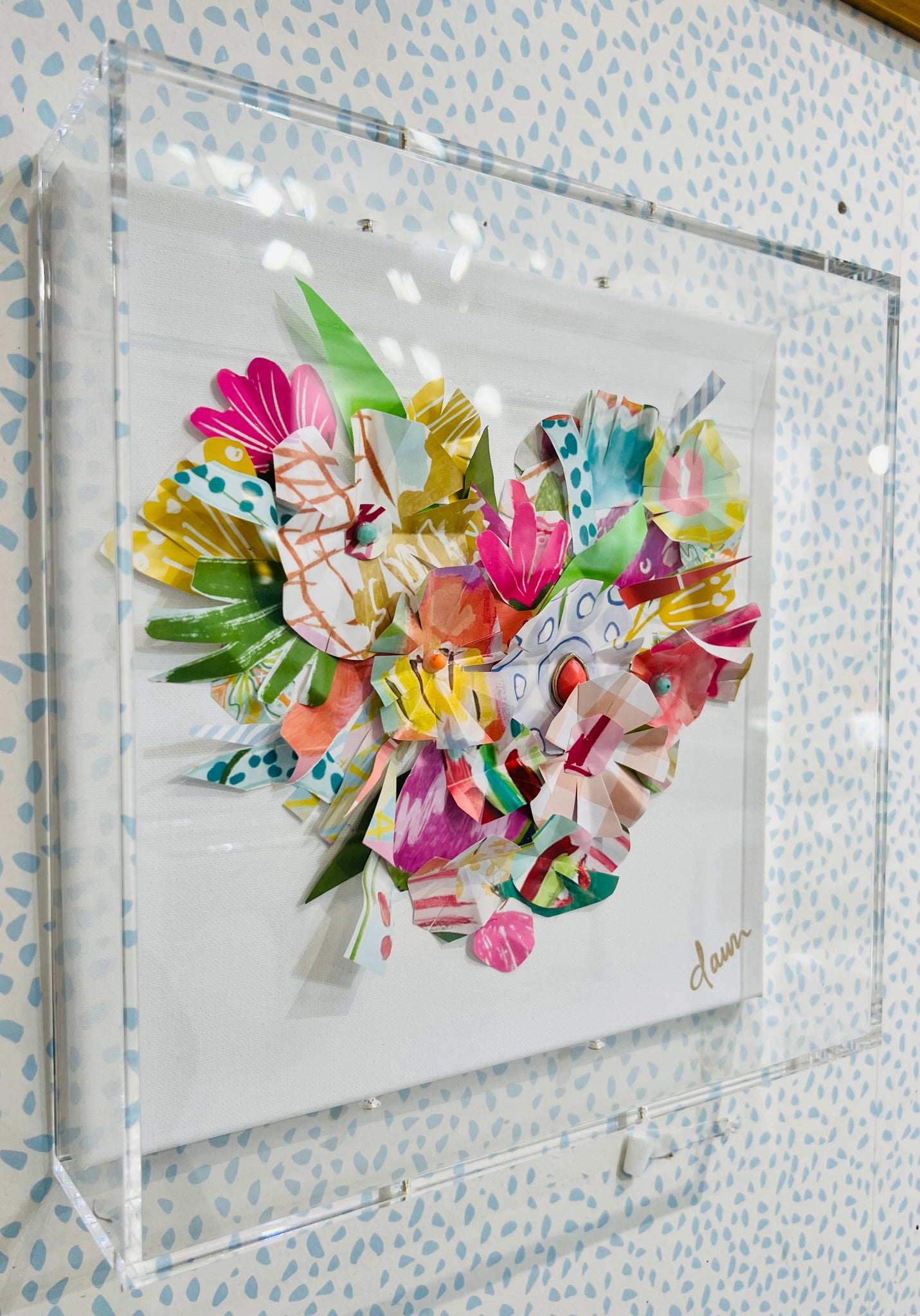 This is a one of a kind original piece from my Chrysalis collection, made from my exclusive painted papers and my digitally designed papers and vintage beads, mounted on a painted canvas in an acrylic box.